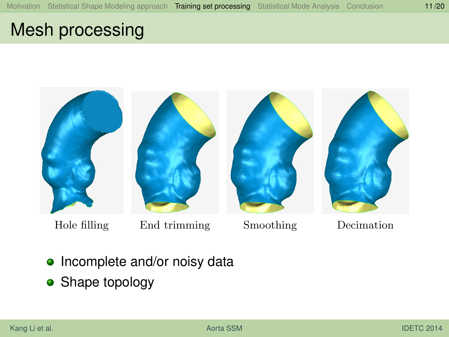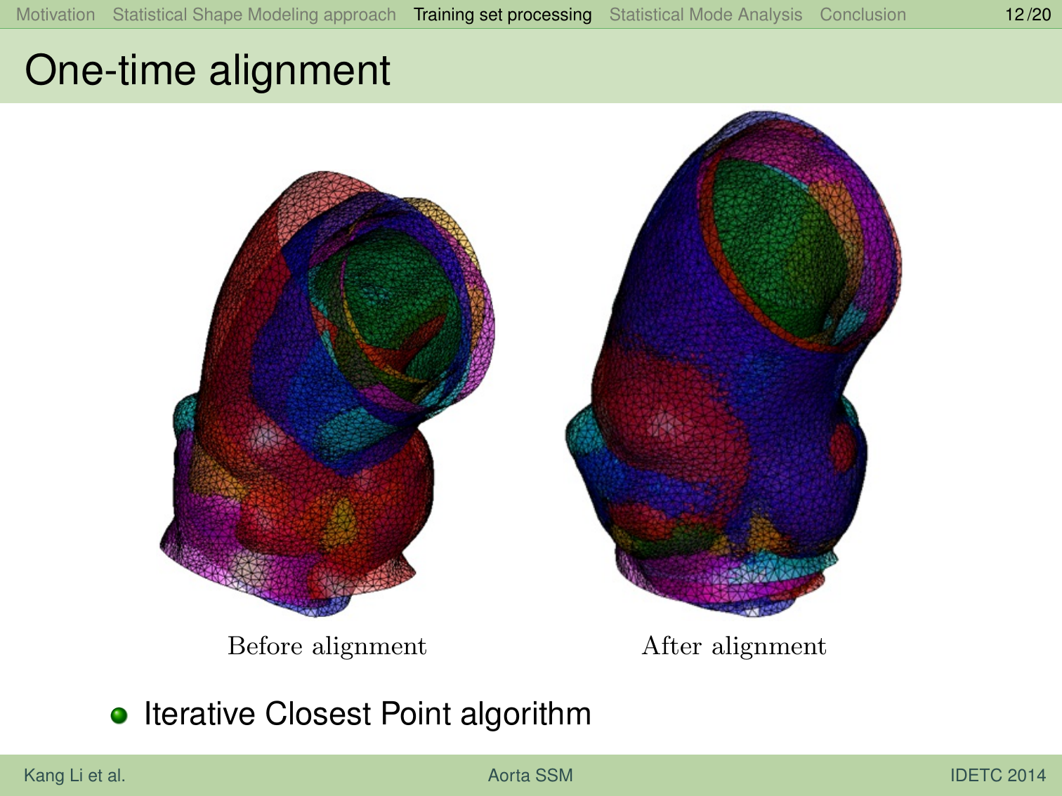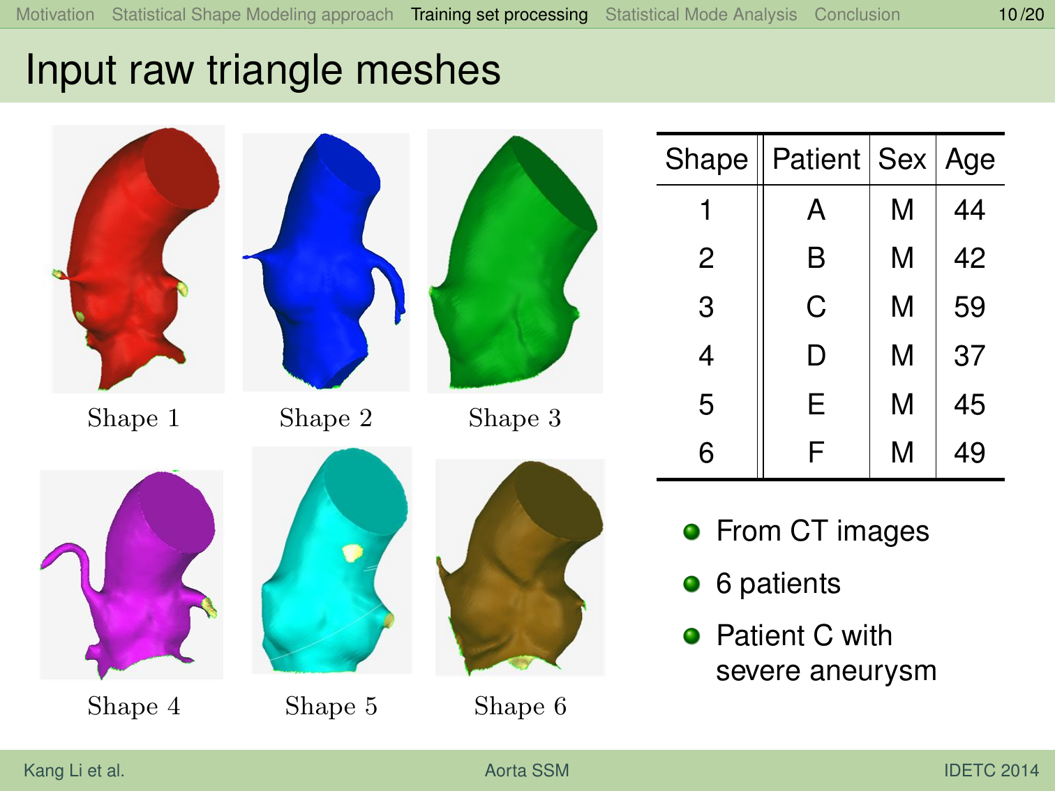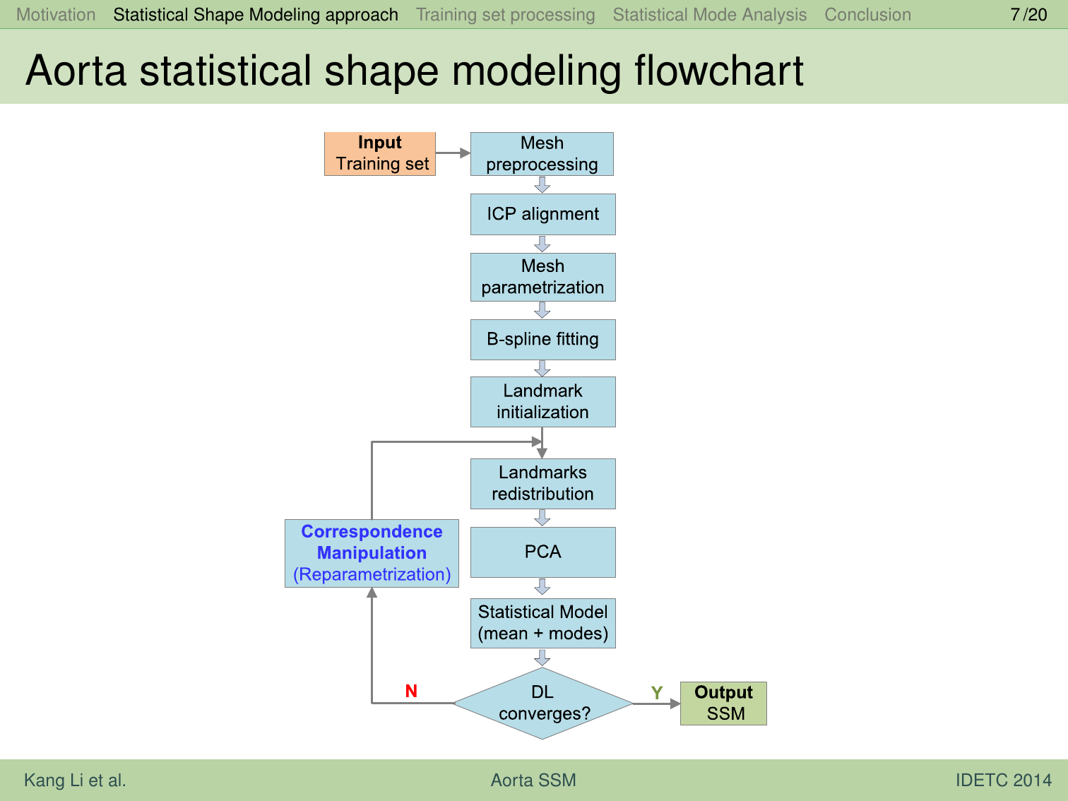 Patient-specific computational study of aortic disease provides a powerful means for diagnosis and pre-operative planning. However, creating patient-specific computational models can be time-consuming due to the fact that anatomical geometries extracted from clinical imaging data are often incomplete and noisy. This paper presents an approach for constructing statistical shape models (SSMs) for aortic surfaces with the eventual goal of mapping the mean aortic geometrioes to raw surface data obtained from the clinical images for each new patient so that patient-specific models can be automatically constructed. The input aortic models in this study come in the form of triangle meshes generated from CT scans on 6 patients. Statistical models with modes that characterize the variation pattern are found after optimizing the group-wise correspondence across the aorta training set. We use the direct reparameterization approach to efficiently manipulate shape correspondence. We use B-spline based differentiable shape representation for the training set and use the adjoint method for deriving analytical gradients in a gradient based approach for manipulating the shape correspondence to minimize the description length of the resulting SSM. Our numerical result shows that the evaluation measures of the optimized statistical model have been significantly enhanced.