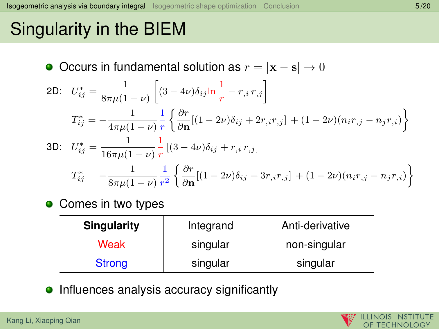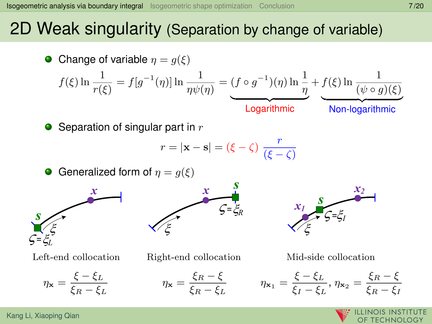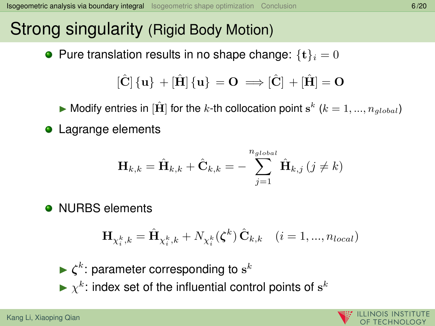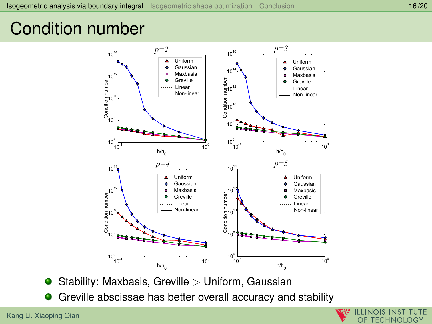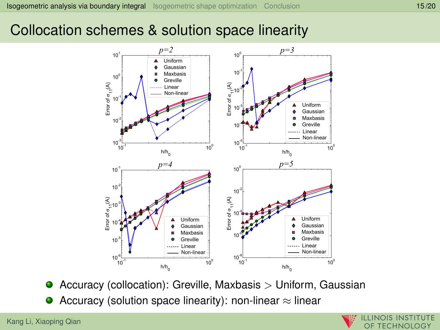 如上图所示,文中提出的基于边界积分公式(Boundary Integral Equation 或 BIE)的等几何分析方法(IsoGeometric Analysis 或 IGA)用于求解轴向承重的连杆形状优化问题。模型的边界由22块NURBS曲面片构成,共划分为382个NURBS边界单元。在经过优化求解的22次迭代历之后,连杆体积达到最小值,同时所受最大应力也从510Mpa降至420Mpa。